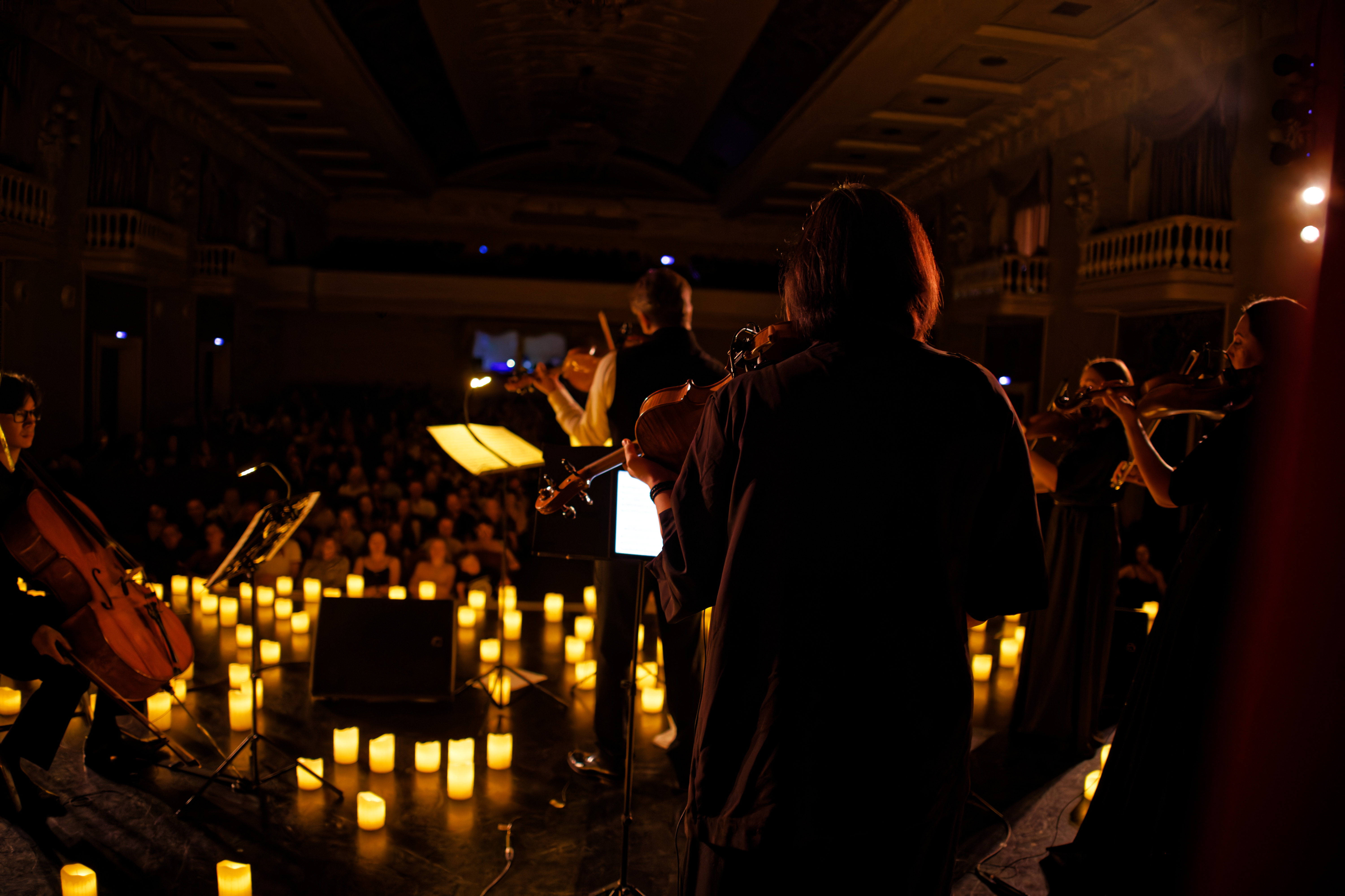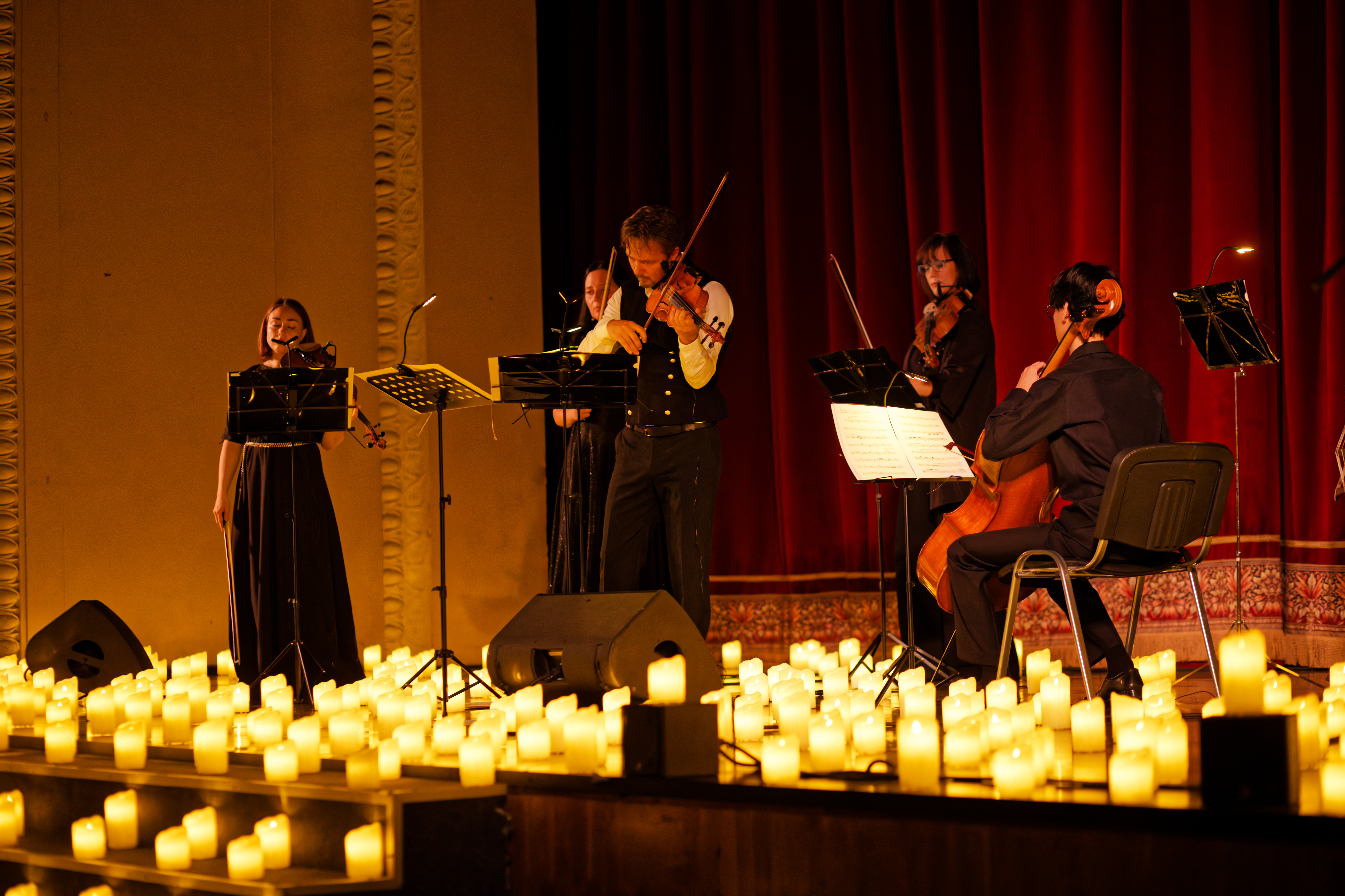 Всё это — в живом исполнении струнных, в обволакивающем тепле свечей, в полумраке, где каждый звук — как луч света на холсте. А вы, затаив дыхание, станете частью этой переменчивой музыки — как будто природа дышит через вас.