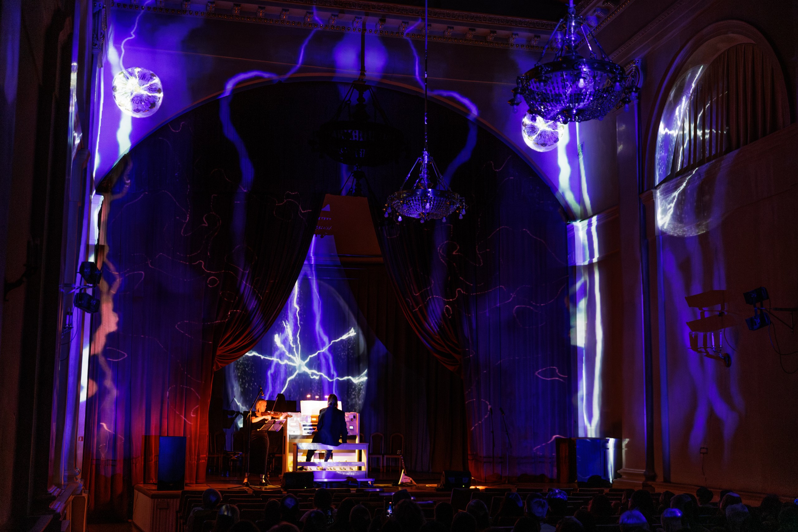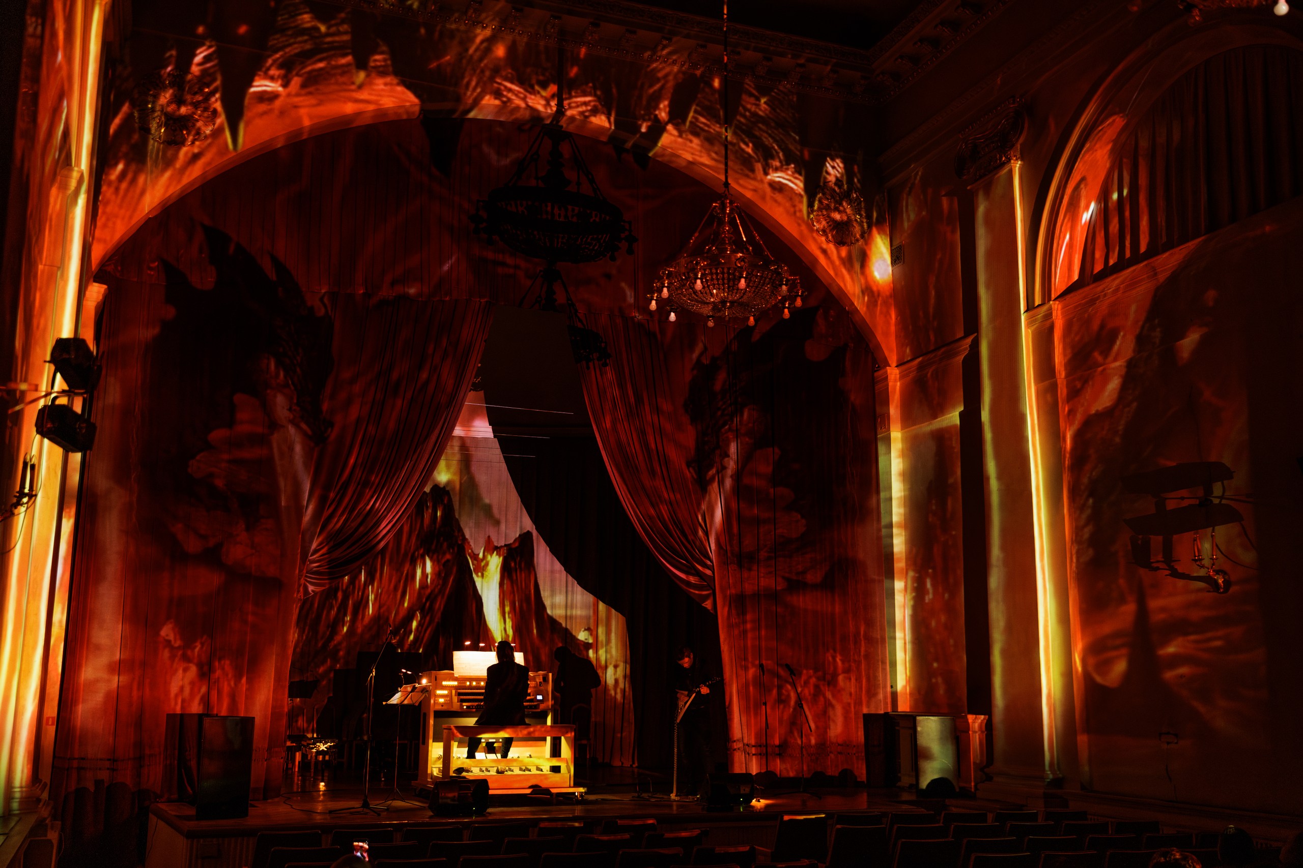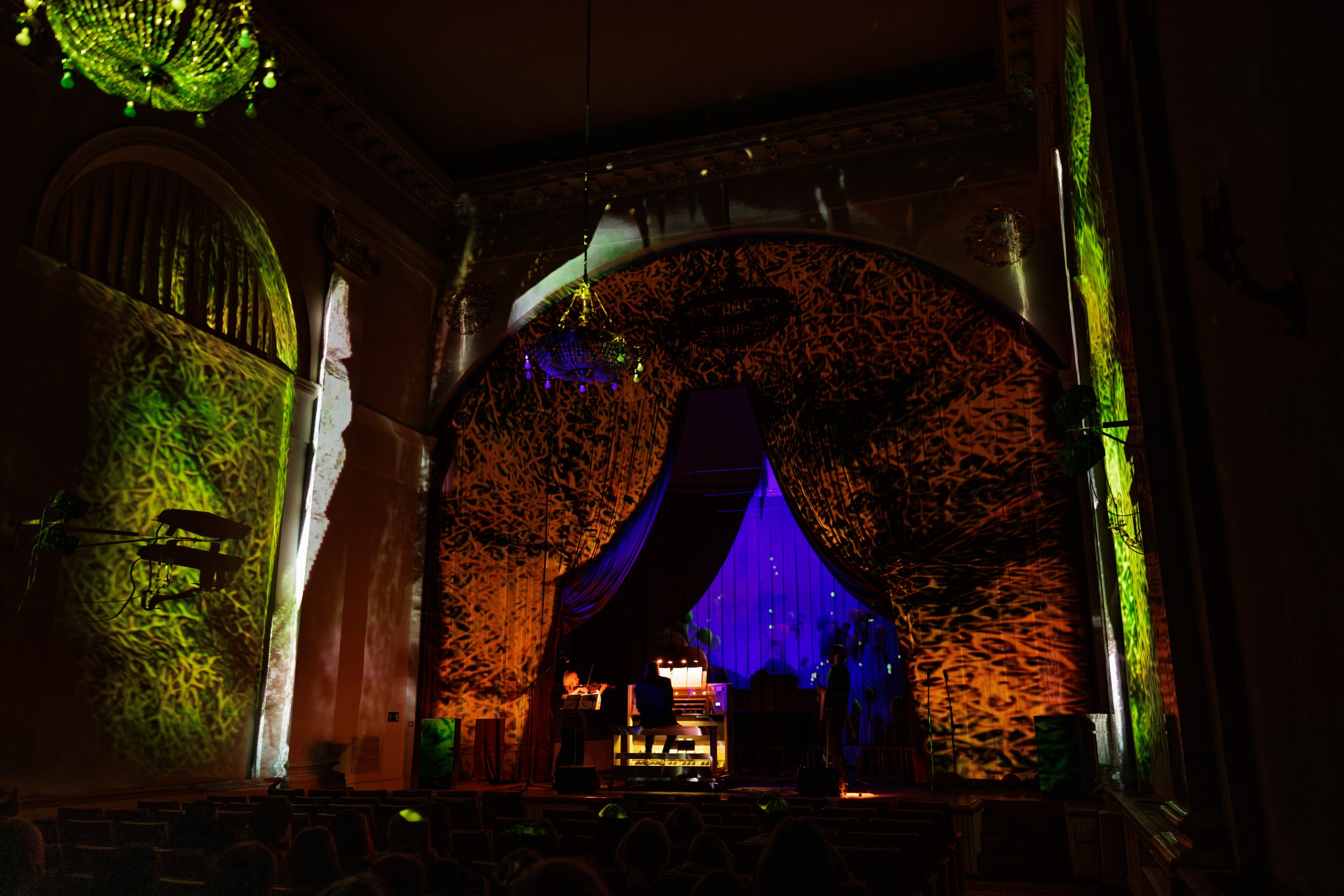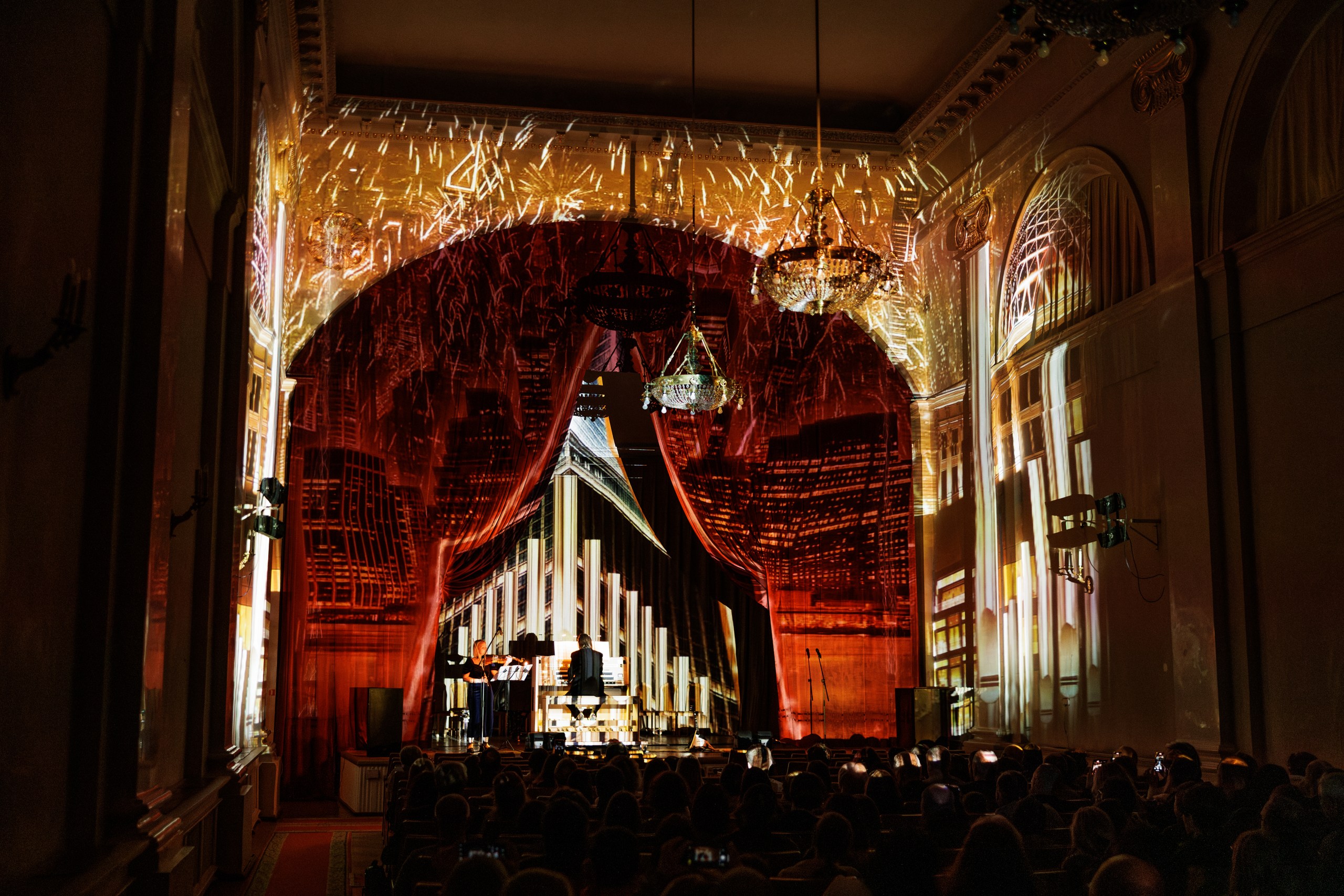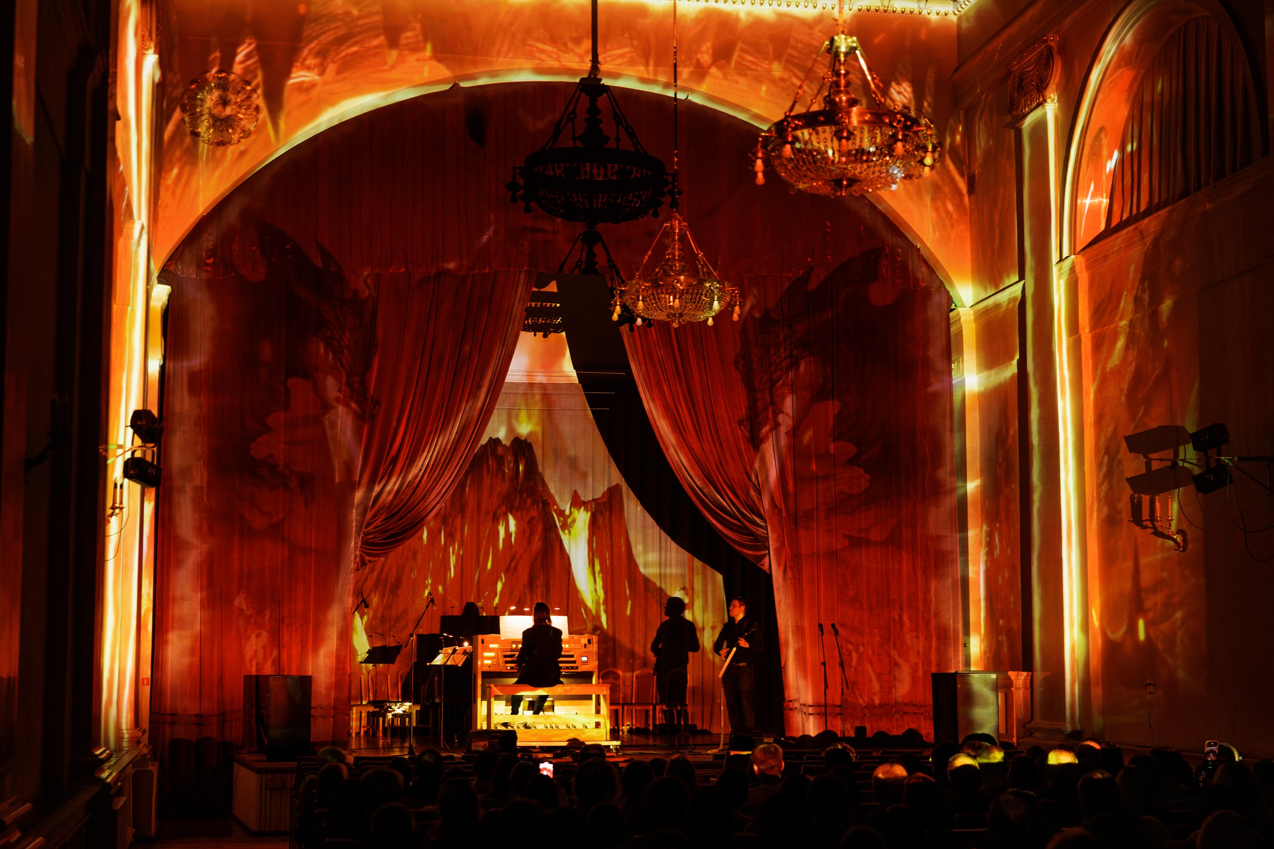 Иммерсивный вечер, где архитектура становится частью шоу. Объемные световые проекции превращают старинные стены особняка на Фонтанке в живую декорацию, а на органе звучат культовые рок-хиты — знакомые мелодии вдруг раскрываются мощно, неожиданно и даже космически, заполняя зал со всех сторон.